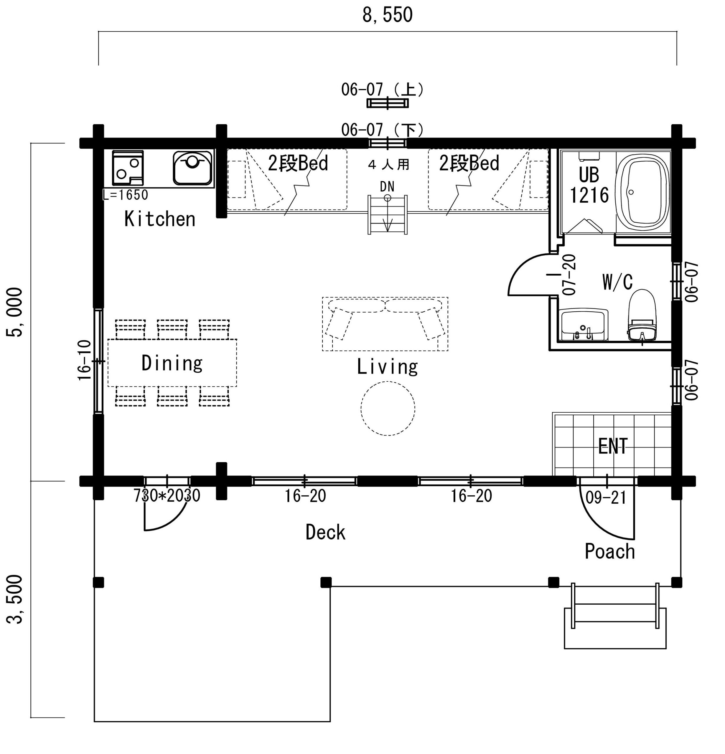 サエラホームのログハウスプランは、お客様のご要望や現場の状況に合わせて、柔軟に図面変更が可能です(「フリープラン」)。