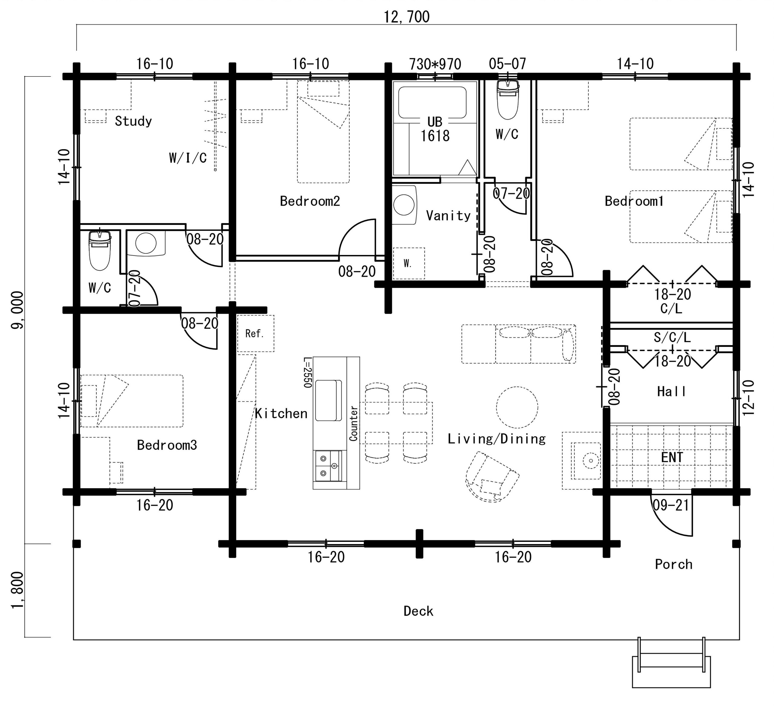 サエラホームのログは木材の㎥(体積)で積算するため、間取り等の変更やフリープランでも、m³(ログの体積)単価は変わりません。