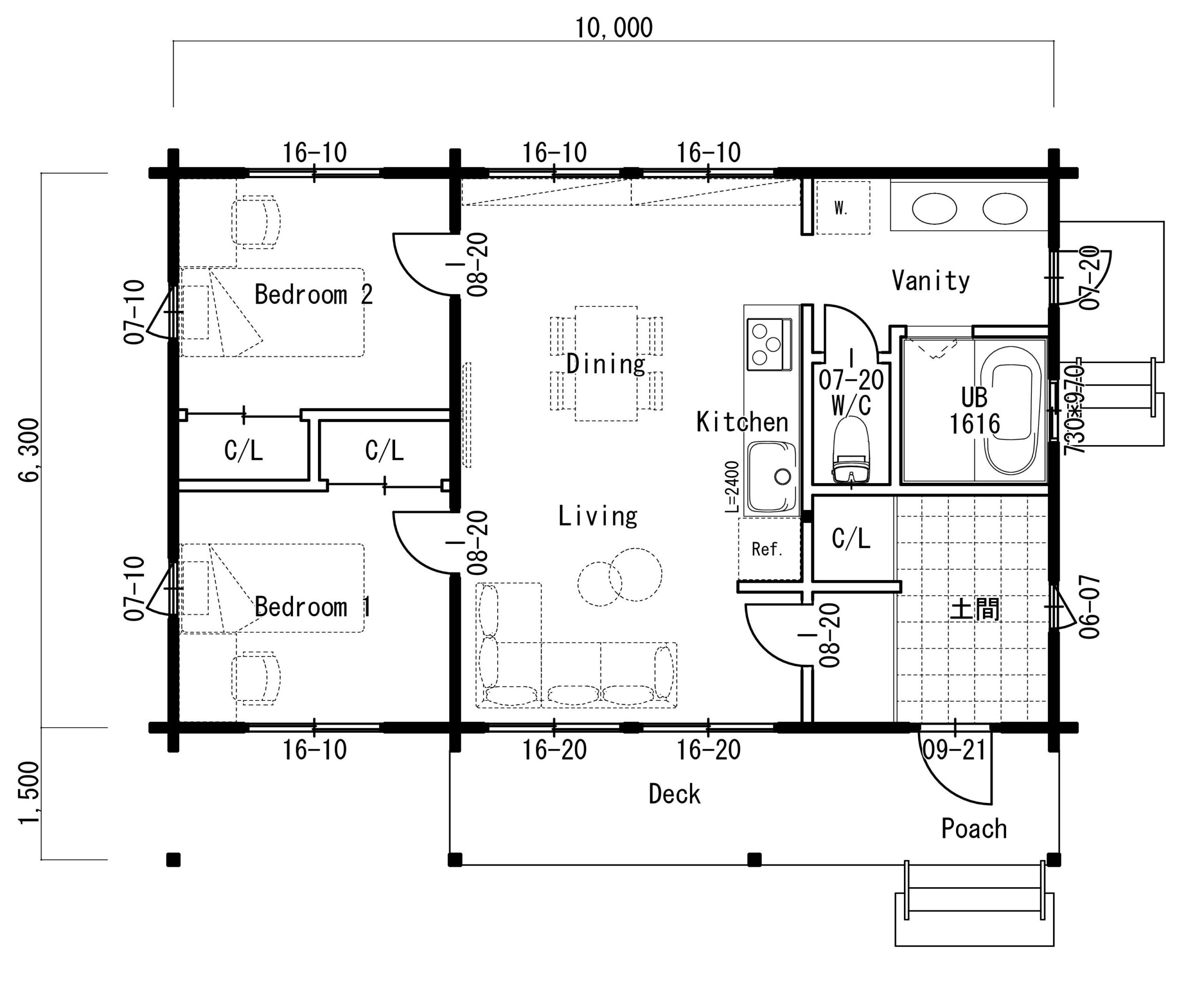 サエラホームのログハウスプランは、お客様のご要望や現場の状況に合わせて、柔軟に図面変更が可能です(「フリープラン」)。