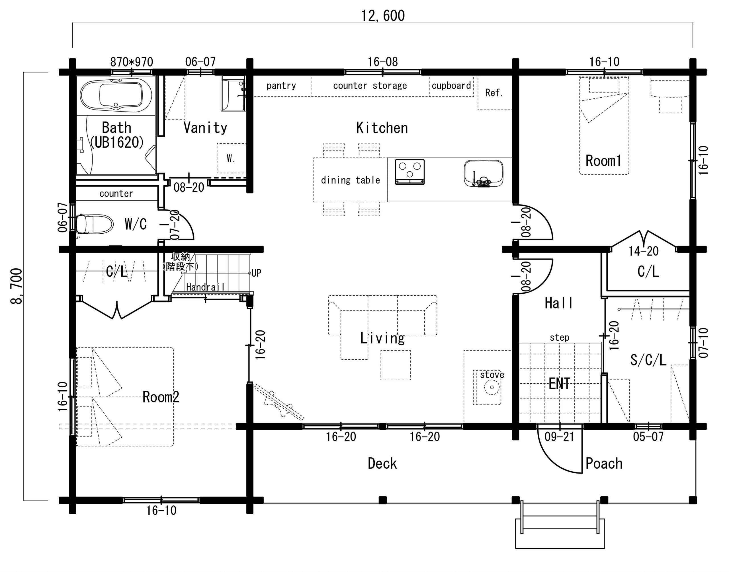 サエラホームのログハウスプランは、お客様のご要望や現場の状況に合わせて、柔軟に図面変更が可能です(「フリープラン」)。