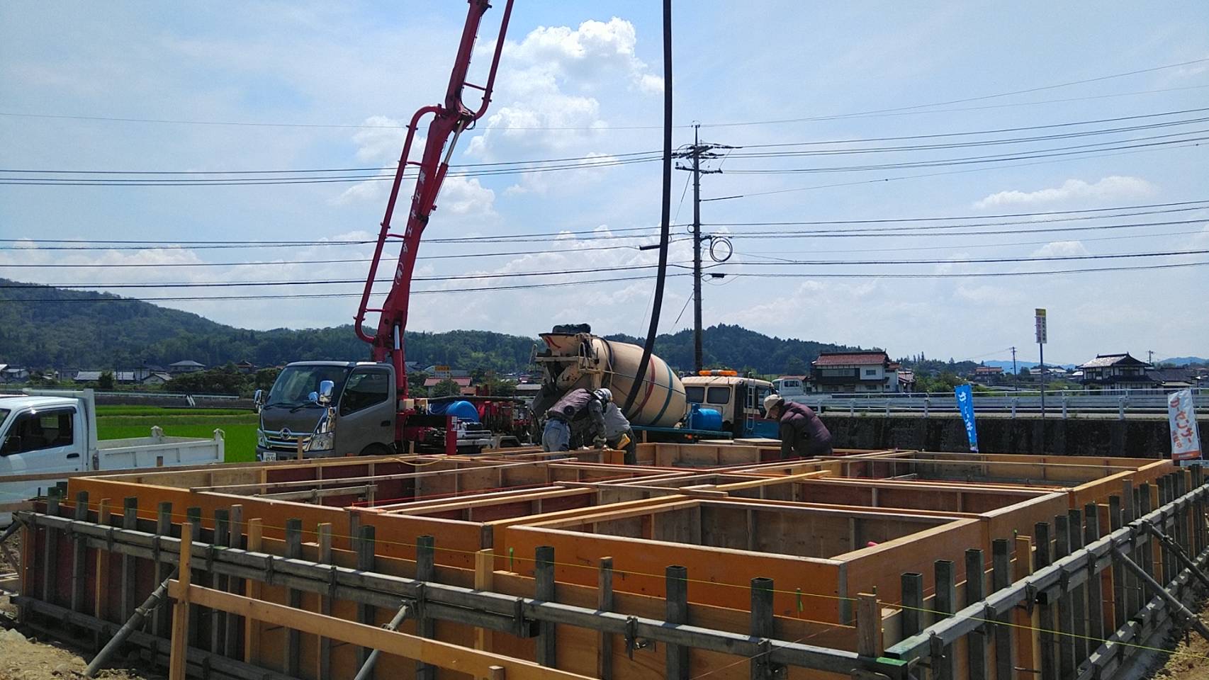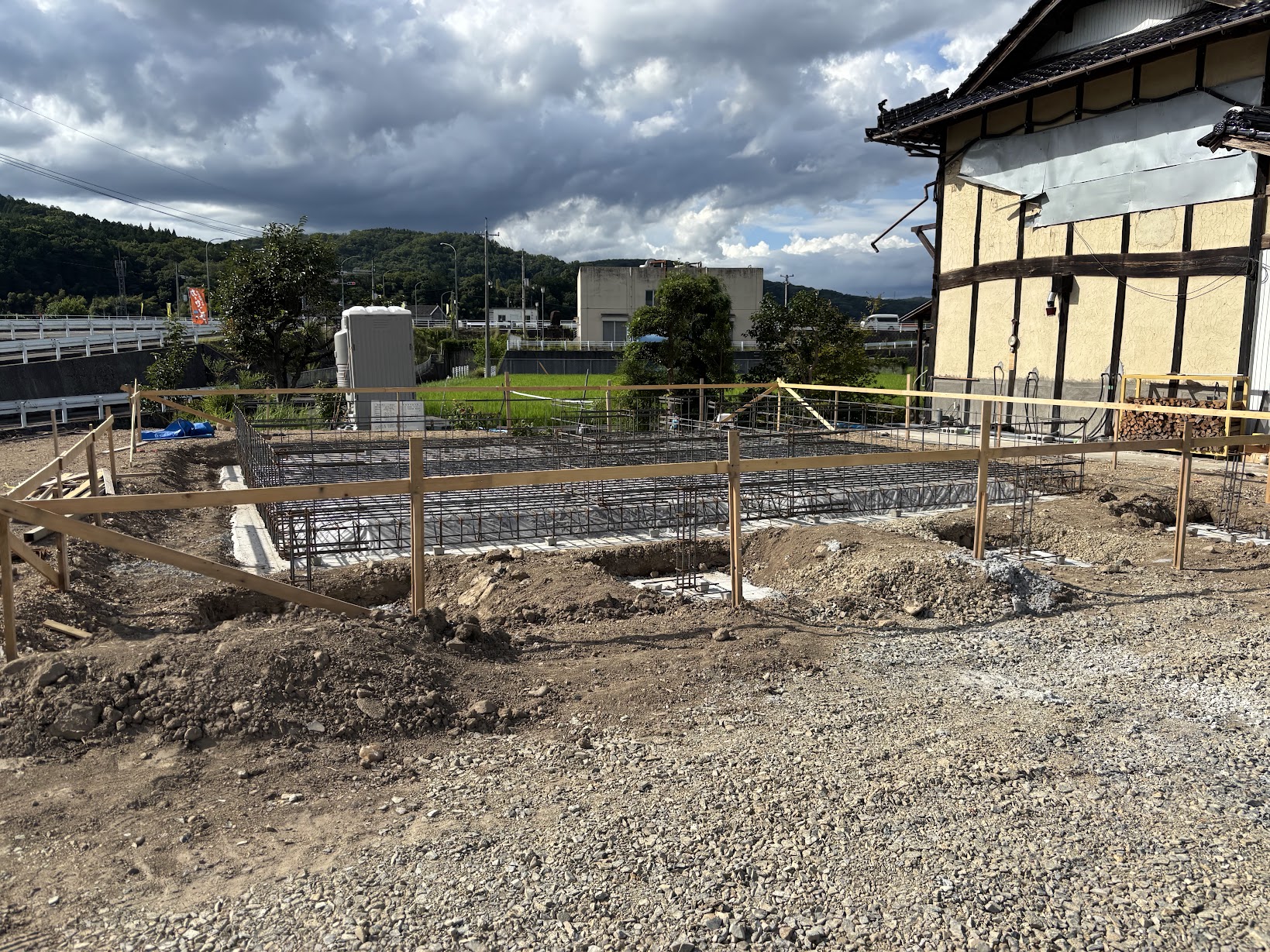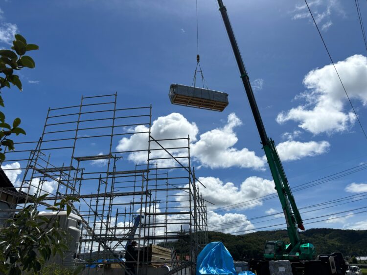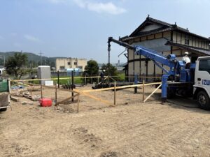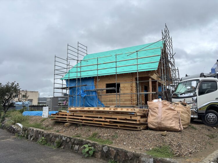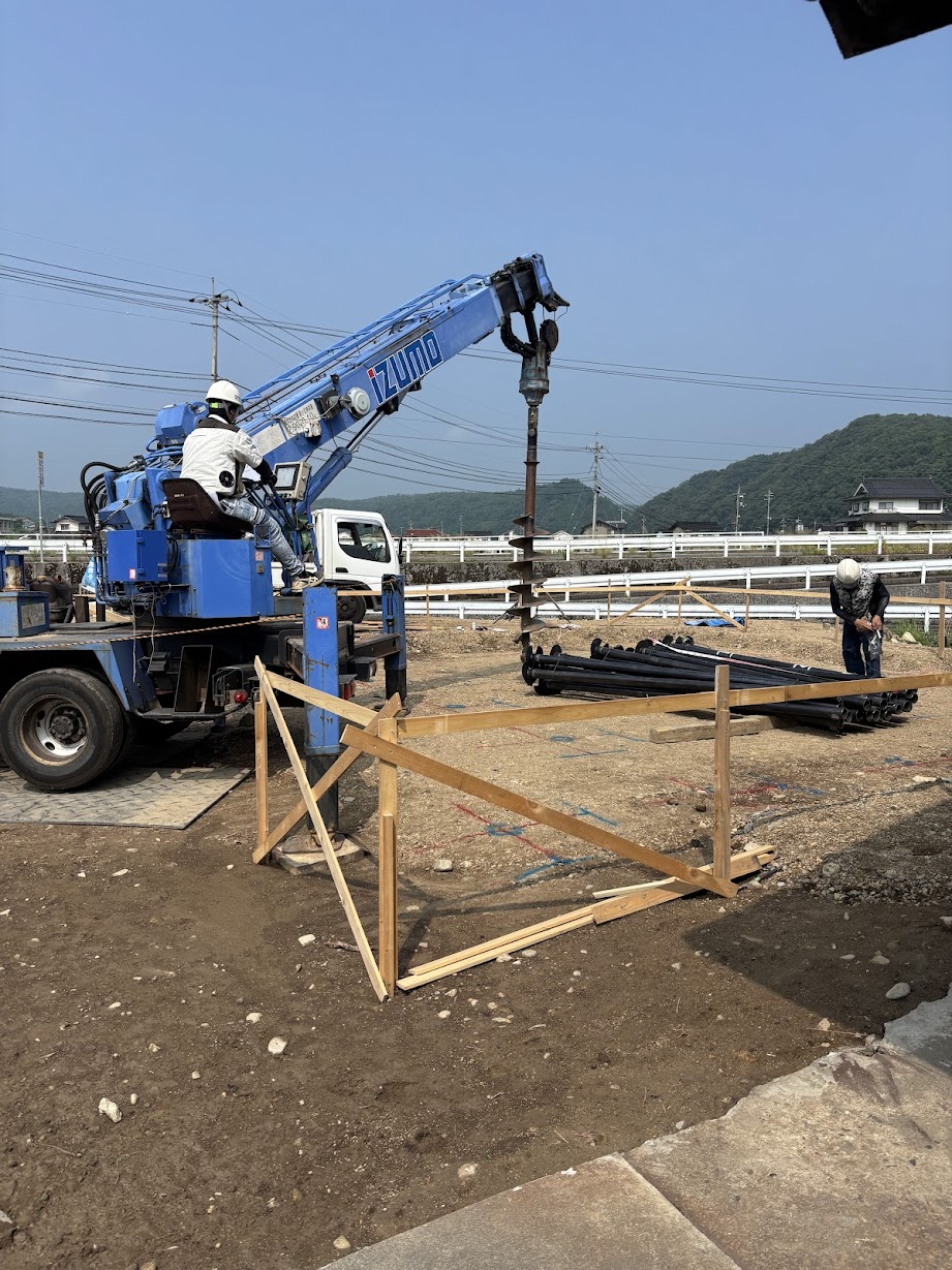 RX40-SH-Family in 三次市(広島県)RX40-SH-Family in 三次市(広島県)は現在施工中です。内見・見学を希望される方はこちらからお問い合わせ下さい。STORYRX40-SH-Family in 三次市(広島県)が出来るまで 2025年9月26日二階まで出来ました。天気が不安定な中、着々と進めております。 2025年9月22日ログを組んでいますゲリラ雨が多いですね、、、濡らさないように組むのは大変です。 2025年9月9日ログ搬入大雨の後で、基礎にたまった水をかき出し、、、幸いお天気が良く、すぐに乾きました。電線を超えての搬入です。搬入完了です!暑かった、、、💦 2025年9月1日基礎完成基礎工事が完了しました! 2025年8月5日K様邸コンクリートはいります! 2025年7月22日K様邸元々あった建物を解体し、基礎工事が始まりました。施工例一覧 検索: 検索